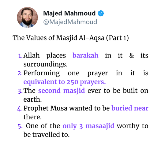 Those who honor that which Allah honors, then it’s a sign that they have taqwa & iman in their hearts. Among the many things regarding this is Al-Masjid Al-Aqsa. Today, I want to share with you 5 things that prove the honorable status of this masjid.