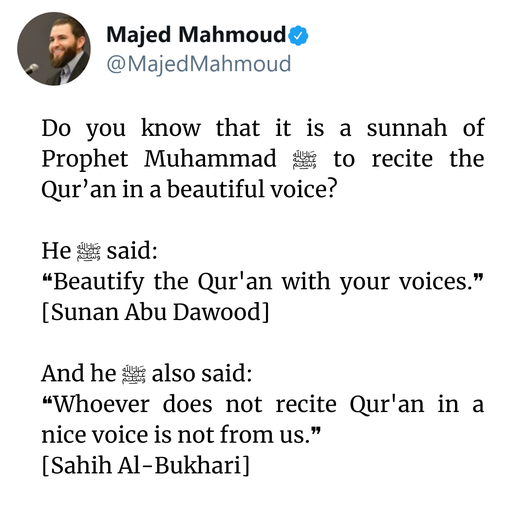 And do you know that it is also one of the sunnah of Prophet Muhammad ﷺ to recite the Qur’an in a beautiful voice?