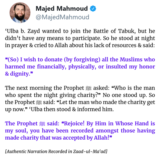 Now think of that person who has wronged you. Who are those who you want to forgive, so that Allah can accept it and forgive you, as well as make it as charity for you?