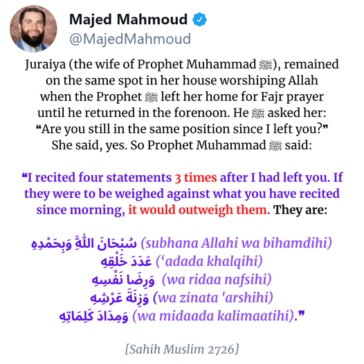 So Prophet Muhammad ﷺ taught her this amazing dzikr: