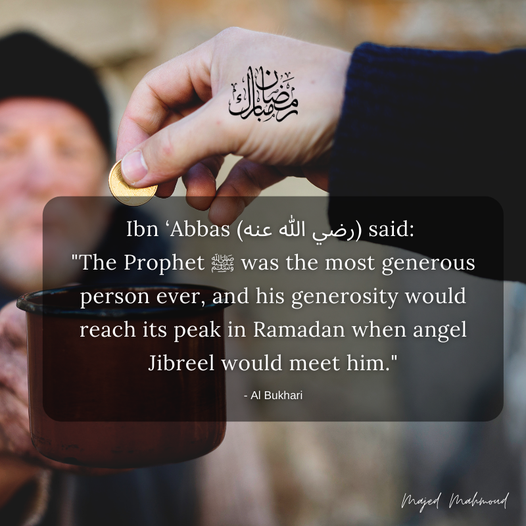 The Prophet ﷺ was the most generous during Ramadan. May Allah increase and acce… The Prophet ﷺ was the most generous during Ramadan. May Allah increase and accept our charity during this blessed month, Ameen. Share it with your friends:Like this:Like Loading... View more from Majed Mahmoud
